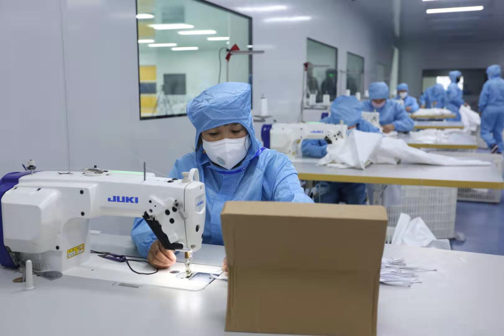 215日,PA尊龙时凯集团新引进的口罩生产线全力开动,正式出产医用口罩产品。据悉,该批5条生产线满负荷运转后,日产口罩约50万片。此前的24日,PA尊龙时凯集团联合晋江兴德织造有限公司启动了防护服生产,目前日均产能可达1000件。